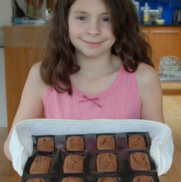 When I finished making them, as well as the chocolate sauce that went with them, it was time for my brother to come home from school with some of his friends. I put all the brownies on one plate and they all had one. Joe especially enjoyed them and kept stealing them throughout the rest of the evening, so I had to make them all over again the next day.