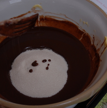 I also liked seeing the white sugar on top of the chocolate and you could make pictures by dribbling swirls of chocolate mix over it – the results should have been in the Tate Gallery.