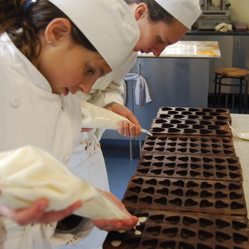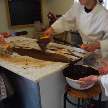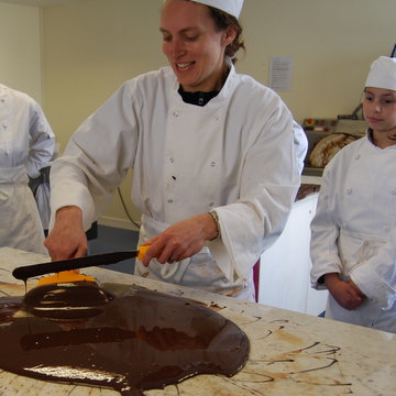 We first learnt how to temper chocolate – great fun, with plenty of action, elbow grease and pinpoint temperature readings.