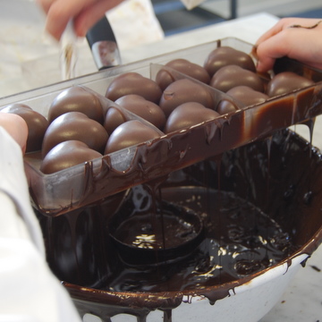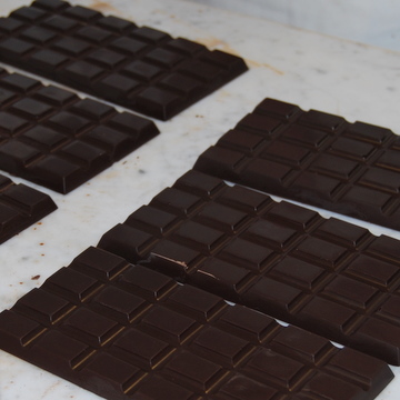 Bars of dark shiny chocolate stacked up on the table like gold bullions.