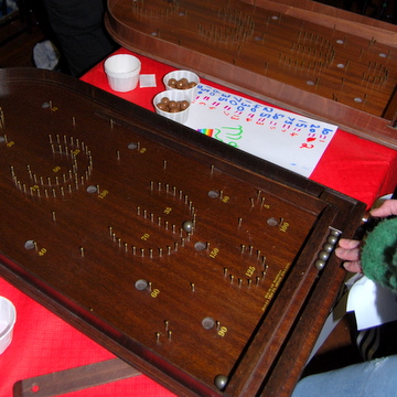 The second game used Maltesers and a bagatelle board. Each person had 10 marbles for the bagatelle and you got a Malteser for each one that scored on the board.