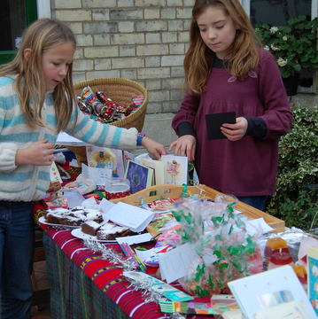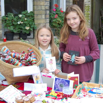 Maudie: Every so often, my friend Alice and I have a sale to raise money for a charity called Guide Dogs for the Blind. Two have been Christmas ones, and one in the summer. Each time we make new things. This year we made a selection of things – brownies, flapjacks, fudge and mince pies, Christmas and birthday cards, Christmas crackers, candles and Christmas labels. The crackers went down really well, as did the candles and all the food. The labels were rather popular too. We made them out of old Xmas cards we didn’t need any more, then punched holes in them and strung some pretty string through them. The cards we did the same – apart from sticking them on some card with some pretty background paper. It’s a great way to recycle cards you don’t want.