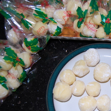 Small tub double cream Few drops vanilla extract 225g good-quality white chocolate, finely chopped 50g desiccated coconut or icing sugar for rolling In a pan, melt the butter and double cream together gently, then add the vanilla. Add the white chocolate pieces and beat to a smooth paste. Leave the mixture to cool in the fridge for two to three hours, stirring occasionally to ensure it is smooth. Once it’s set enough, roll into little balls and coat with desiccated coconut or icing sugar. Place in a bag or box, and store in the fridge until needed. Will keep for several days. 15th Dec 2008