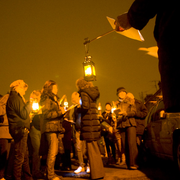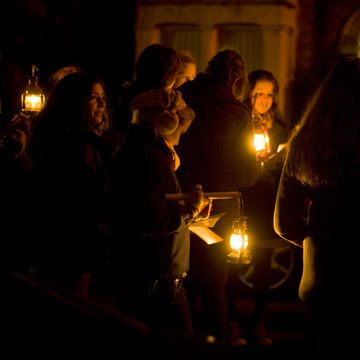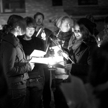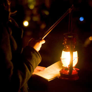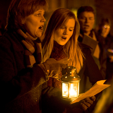 We have a self-made booklet with all the song words in and take lanterns or bicycle lights to read them by. There is a mixture of the traditional carols with more ‘fun’ Christmas songs. I have a love of the ancient ones such as ‘The Boar's Head’ and ‘Wassail, Wassail, All Over the Town’.
