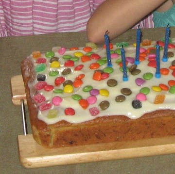 Actually it’s not so green, more an ordinary Victoria sponge colour with bits in. Jo’s just had a stove and oven put in after years cooking with a Baby Belling and microwave and is enjoying her new culinary freedom: she cobbled together a big batch recipe from various online sources, and decorated it with Smarties and five candles which Gaia blew out beautifully. It was a great cake. Most of the kids gobbled it up though a few headed off towards the chocolate brownie plate instead.