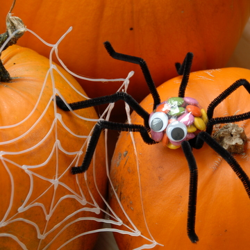 The kids are always keen to receive sweets, so I adapted the basic shape to make a Sweetie Spider using a handful of Smarties as the body. Put these leggy spiders all together on a big tray and they look very gruesome.