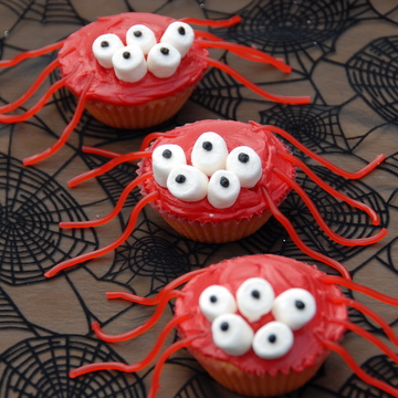 They’re not quite bloody enough for some Hallowe’eners, though. And so, when the pipe cleaners run out, we’ll bake a batch of cupcakes for an Invasion of the Bug-eyed Spiders. These creepy arachnids are dripping with more blood than an episode of Grey’s Anatomy, with their red icing heads and strawberry shoelaces for legs.