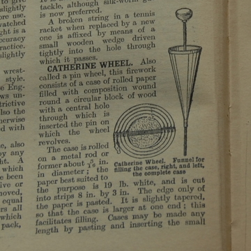 This was in the make-and-mend 30s, when you knitted your own swimsuits (mine is coming along nicely, thank you, see 10th Sept blog), bathing shoes and even canoes. It felt a bit like stumbling across a bomb-making kit on the internet: I flicked through the pages with shock and awe, thanking god for the great modern invention of health and safety. We’d have blown our hands off trying this. Apparently, the Crusaders brought back ‘pyrotechnic compositions’ from the East in the 13th century, and though Henry VIII was a fan, English fireworks didn’t really get going with a bang (excuse the pun) until the publication of Pyrotechnia by John Babington in 1635. The ingredients sound like an alchemist’s hit list: saltpetre, sulphur, sulphide of antimony, mealed gunpowder, charcoal, chlorate of potash. To make red ‘stars’ you need carbonate of strontia; for blue, arsenate of copper; and for green, chlorate of baryta. As well as the shellac of course. And sometimes what is called ‘dark fire’ is used to light the charge. Very Voldemort. Where did the ordinary person pick up these chemicals? Especially since 1894, chlorate of potash and sulphur were considered so dangerous by the Home Office explosives department that they were banned. Strangely enough, in my handy tome ‘Fireworks’ is followed by a big section on ‘First Aid in Everyday Emergencies’. I think this is one project we won’t be trying at home…