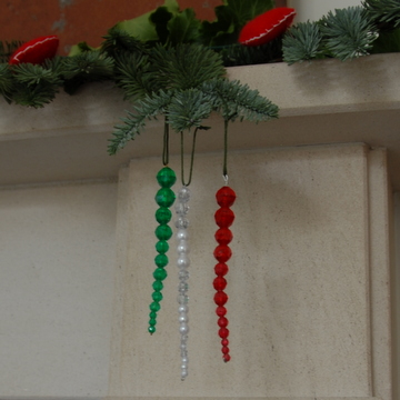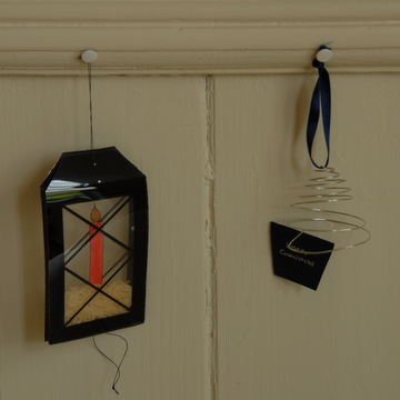 It was great fun and quite quick and easy to make, though to warn you we got very glittery as the glitter on the balls went all over us. We took down two pictures and hung the decorations up in their place. They look very special in your house at Christmas. And if you put them in your dining room or kitchen, you can stare at them while having your Christmas dinner. For other homemade Christmas decorations, see our Glass Tree Biscuits, Feather Angels and Secret Gilded Walnuts.