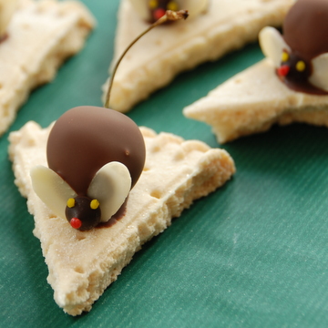 Last year Joe made Cherry Shortbread Mice, dipped cherries in chocolate with almond slices for ears and icing noses and eyes – cute, easy and speedy if you have loads of people to make gifts for. It makes you realise that homemade gift-giving is all in the presentation – wrap anything up in a sheet of cellophane and tie with Christmas ribbon and you have a good-looking present.