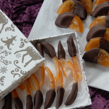 Tamsin: This year my family is going to be dipping crystallised oranges and peel in chocolate and making boxes. Carla, dipping, Joe, making boxes. Joe has yet to design the container but when he does I'll put it up as you always need a box or two at Christmas.