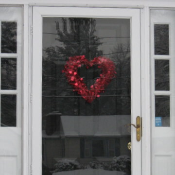 Jane: Wandering around snowy New England over the weekend, I saw these heart-shaped Valentine’s wreaths on people’s front doors. What a cute idea. These ones were very pink and red and glittery, and would be easy to make one with greenery from the garden with some red berries, ribbons and little heart motifs…