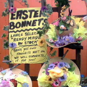 Easter bonnets came out of the tradition of wearing new clothes on certain days of the year to give good luck. Easter Sunday was one of those days, and Easter bonnets decorated with ribbons, flowers, lace and other assortments were paraded in church then shown off afterwards in the Easter Day Procession.