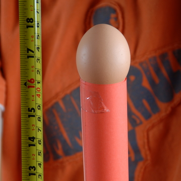 Can anyone reading this build a tower that is higher than this 62cm tour de force (which, the engineer would like us to point out, was constructed using only a single piece of A4 paper). Actually, Carla's beat it at 72cm, but her tube skyscraper was stuck to the table with guy ropes made of sticky tape, which is probably against the rules (if we had written any). We timed how long the tower could hold the egg; if you reach ten seconds, you're doing well.