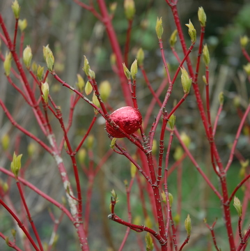We put blue eggs in the hyacinths silvery green ones in the woodpile, and red ones in the stems of the dogwood bush.