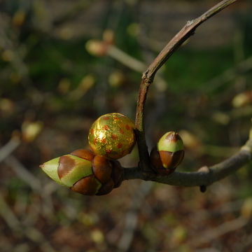Purple eggs nestled among the mauve flowers of ground-hugging violets, and a golden copper-coloured egg was perched on the curved branch of a horse chestnut bud.