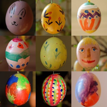 This Easter, we had the family over and everyone from the age of three to three score and ten painted a blown egg to go on the Easter tree. I sprayed the decorated eggs with gloss varnish which looks better than last year's unvarnished ones.