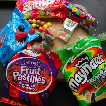 Tamsin: We decided this year to theme our Halloween around Devils. A devil must have horns, sinister eyes, a mean mouth and red skin. For our cupcakes all this had to be achieved with a selection of sweets from the newsagents which unfortunately excluded liquorice (the smell is enough to make me feel rather woozy). This was a bit of a handicap due to the lack of other black sweets around, so we decided purple ones would be a fine substitute.