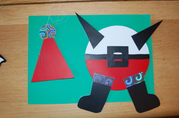 can build the Santa. Stick a boot on each side of the body, fitting them