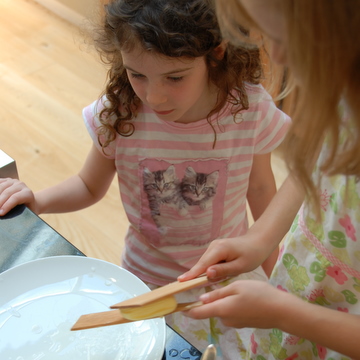 We have been playing Eiffel Eggs, a construction challenge that gets good and messy. Every member of the family has to build a tower that will support a raw egg from just two sheets of A4, a pencil and sticky tape. Joe put on some loud music - Costello Music by The Fratellis - to get our creative juices flowing and it seemed to work. The kids came up with some freethinking solutions that temporarily defied the laws of physics: an egg tower held up by thick wodges of sticky tape (eat your heart out, Richard Rogers), a tower with skinny but strong rolled legs and an egg basket at the top; and a high-rise three-legged boat, which quickly tilted over sending the egg to a sticky end.