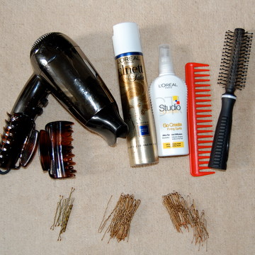 You will need: Comb and brush Hair pins (we used kirby grips and bun pins) Hairdryer Hair doughnut Styling lotion Hair spray