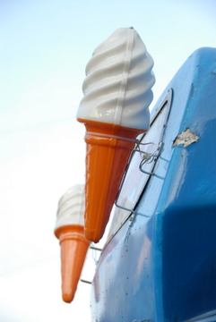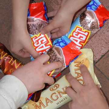 Tamsin: We are busy in different rooms of the house. Suddenly the sound of the chimes breaks into our concentration – is it coming our way? Confirmation is given as the tune gets louder and louder and all hell breaks loose. We converge on the front door shouting, ‘Quick, quick, outside, where’s my purse, shoes, quick.’ It’s as if we are all possessed. I have no intention of eating an ice cream but whenever an ice-cream van comes to our residential road I feel I have to make everyone else participate in this glorious activity.