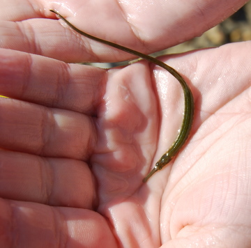 So this year, Joe set out with net in hand and snorkelled in the shallows hoping to repeat the catch. Much to our surprise he caught instead a snake pipe fish, our second encounter with them in a year. This one was shorter and had a fanned end to its tail but it was definitely a live version of the one we found washed up from the North Sea a few weeks earlier.