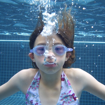 But now you can just buy a cheap (about £8 for a Kodak Max Underwater or Fuji Quicksnap Marine) disposable underwater camera online and have a go in your local swimming pool. S’easy: you just hold your breath, point and press. The kids love it and zoom around underwater doing funny poses and pulling horrible faces for the camera – being photographed floating two feet underwater with mermaid’s hair and floppy limbs is pretty special. They also like taking arty shots of brilliantly coloured goggles floating towards the bottom of the pool…