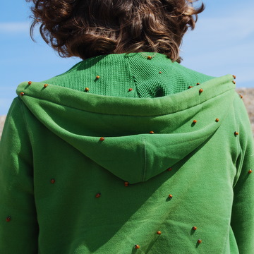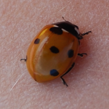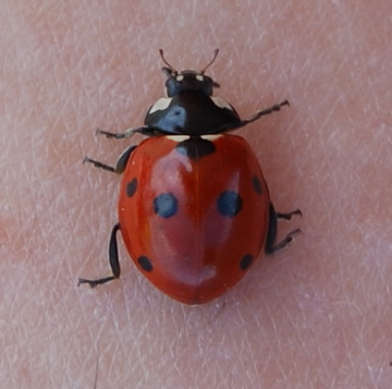 Tamsin: What not to wear when going to the seaside during a plague of ladybirds - a green sweatshirt top. They must have thought that they had found the largest leaf ever, a great place to rest after their flight across the sea from the continent.