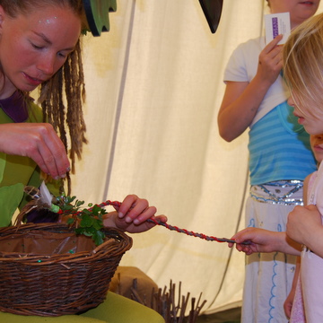 The workshops were beautifully thought out with the young fairies choosing the wood their wands were made from by spinning a pointer to a season, then smelling the leaves of two trees and choosing the one they liked best. (The cousins both chose hawthorn - very appropriate as hawthorn is the tree traditionally associated with May Day and they were both born in May.) Having sneakily had a smell myself, I was amazed at the strength and variety of the different leaf odours.