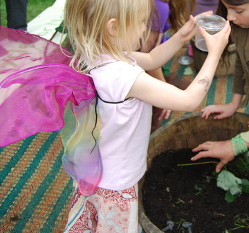 After the making we all made our way through the forest to see the fairy queen, following the glittering dust and hiding from some noisy blue and green trolls who were also going to ask the queen if they could have some wings. As ever their request was denied and they left empty ‘winged’. But all was not just flowers and glitter: one favourite activity was the compost fairy who had wickedly black boxes of earth wriggling with creepy crawlies to catch and view.