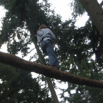 Maudie: three friends and I went to Thetford Forest in Norfolk to do a Go Ape! course for my 11th birthday party. When we arrived a man gave us harnesses to put on, then gave us a demo on how to attach ourselves to the wire. Then he took us to the first course. There was a series of wires and zip wires on this one. It looked quite easy, but you had to attach a red metal clip to yourself and it was really hard to get off. Then you had to attach two ropes with a metal clip onto the clasp on top of the wire. Then you flew down a zip wire. You had to run in the air when you came in to land, but I landed backwards instead and got bark down my trousers!