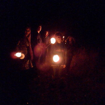 An idea was hatched. First we’d have a snug day, mooching around the house, playing games, cooking, reading, then just before dusk we’d walk to the woods, play on the rope swing and find our way back home in the dark in the light provided by the candle flares. The idea was an instant success with children and adults alike, though as evening approached my enthusiasm turned to anxiety, thinking of the perils of outdoor fire, blustery winds, artificial coat materials and teenage big hair trends. Thankfully, none of these fears were realised but it was still a bit dangerous. By the time we lit the flares and begin to walk back it was quite dark and I was glad of the small torch I had in my pocket to see the fuse to light the flares. The wind was blowy, so we wasted quite a few matches (take lots, is the answer). Walking with the flares was fairly safe as long as you held them upright, but the adults walked behind just in case any stray embers blew off. Walking through the woods in the dark was great fun and the shadows that were cast made for dramatic eeriness. But I was actually glad of the drizzle – this is not an activity to do in crisp dry weather when the woods are like tinderbox, but for bleak, damp, winter, more dark than light days. And for a safer walk in the dark, home-made lanterns or torches are just as good. The children, inspired by our friend Andrew and his packet of lozenges, also played a great game in the woods which we’ve called Sweetie Treasure Chase. NB: Please take special care using fire or matches outdoors and always supervise children closely.