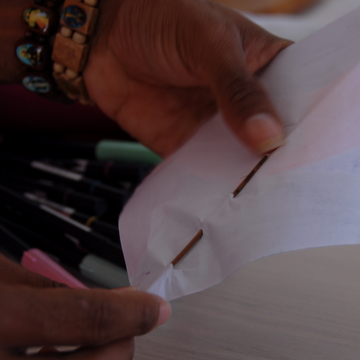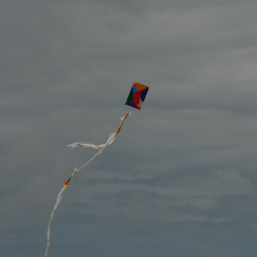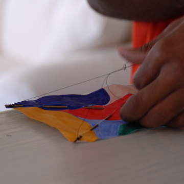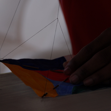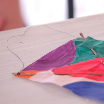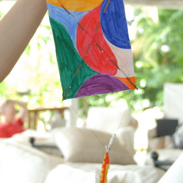 Tie a short piece of cotton (we used polyester cotton which is tougher) to the bottom corners of the kite and attach the tail in the middle so it hangs down.