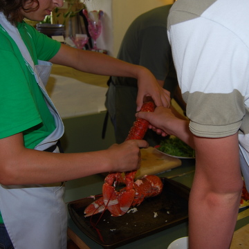 The realisation that enjoyment was certainly going to be spread to everyone came when the lobsters were brought out. Immediately, the 14 and 16-year-old were hooked, dropping them into the pans of boiling water (probably regretting that Guiseppe had humanely killed them first), cracking open the shells and pulling out the contents.