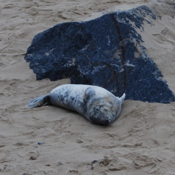 As they walk on they find their path to be very crowded, worryingly with many of the people walking in the opposite direction. The closer they draw the more it seems like the embankment is fenced off, but no one could close a beach, could they? Finally they reach a barrier surrounded by people, and one of their group notices a sign, proclaiming in bold type: Grey Seals Birthing Voluntary Beach Closure Thank you for your co-operation