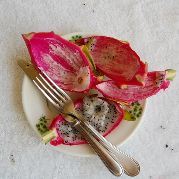 In the end I gave up on insects and turned to the delicious fruit instead. This beauteous pink thing is a dragon fruit.