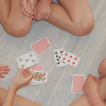 It’s a good game for everyone in the family to play, over the age of about eight. It’s basically like whist – you win tricks and there are different trumps each round – but you have to guess beforehand how many tricks you’ll win per hand, and only score points if you get it right. That can be surprisingly tricky and means you have to learn how to lose hands as well as win them, which can be quite a challenge. The excitement builds in every round because everyone starts with a single card in the first round, then gets two in the second, three in the third and so on until you get a full hand of 10 or more cards (depending how many people are playing). At the end you tot up your scores (which makes this good for maths too) and the person who has the highest wins.