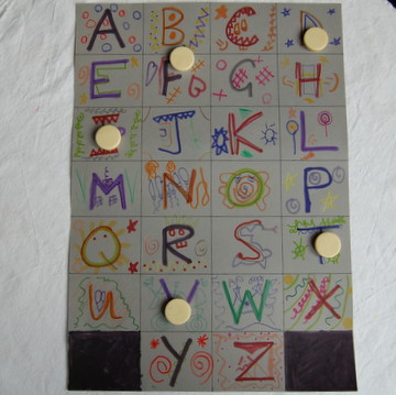 First you draw the letters of the alphabet on a sheet of A3 paper and ask the children to decorate them so they look beautiful. One person then rolls five counters on to the paper to land on different letters (younger children can choose just three letters to make it easier). Everyone writes down these letters at the top of a piece of blank paper. The person who rolled then chooses two extra vowels which are added to the list, to give seven letters in total. The idea is for everyone to make as many three-, four-, five-, six- and seven-letter words as they can from these letters. You can put a 10-minute time limit on it, or just wait until everyone has finished playing – it doesn’t usually take long. Some letter mixes are so tricky you can hardly make any words, while with others you’ll have columns of three- and four-letter words piling up. It’s good fun and great for learning how to spell those tricky ‘don’t sound-like’ words – for example we discovered that ‘jem’ is spelt ‘gem’ and that although ‘more’ is ‘more’ there is also another kind of ‘maw’ as well...