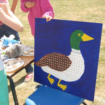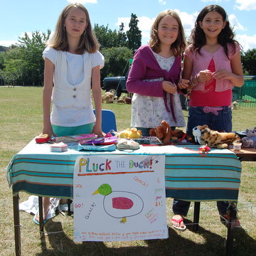 Jane: Last weekend it was the school summer fair and the girls ran a Pluck the Duck stall – a kind of tombola where you win prizes by picking raffle tickets from a duck. It’s easy to make – all you need is a bit of hardboard and some paint (oh and a drill, so see the instructions here). Once you’ve made the duck, you push rolled-up raffle tickets into the holes which people pull out – those ending in 0 or 5 win a prize.