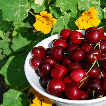 Tamsin: We have been devouring large quantities of deliciously sweet cherries this week, which has meant we've been displaying some very bad table manners as well. We discovered this 'bad-mannered' after-dinner pursuit several years ago while picnicking beside a bubbling stream in Dartmoor. This is not a game to bring out when you have guests, as it does have its disgusting side – spitting.