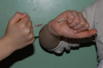 We leave it to dry for a bit, then I and my sister tug and tug with our little fingers until finally it breaks.