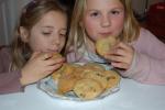 Helen: Carla was very keen to make chocolate chip cookies during the school holidays and I was even keener. The cookies travel very well and we have tested out their flavour at several locations. Firstly, in the bowl in raw state rather a lot of the cookie dough was eaten by Carla, with assistance from Maudie and Edie. It must have tasted good, because around 10% of the mixture disappeared. Secondly, once cooked, Joe tested the first cookie while still hot from the oven. This test showed that flavour is obscured by heat and does become stronger once the cookies have cooled and the choc drops are no longer in danger of burning your tongue. Thirdly, the cookies were taken to the beach to experience the seaside; after a bracing walk in the wind, they tasted fantastic in the semi-arctic conditions.