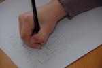 Jane: After being rained off the beach for the nth time this drippingly awful week, we decided to play Gridlock, a paper and pencil game for two I found in an old 1960s' activities book. It's actually quite tricky to play - the idea is to 'draw' your way from 'home' (the cross in the top left hand corner of the grid) to your destination square (the bottom right hand corner of the grid) without being forced out of the grid by your opponent.