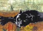 Tom sped through the forest. His soft paws made hardly any noise as he bounded through the tangled undergrowth and over giant twisted roots. “If Jowls could see me now!” he thought, clearing a low branch in a single stride. Mr Leggs had just over an hour by way of head start; Tom did not think it would take very long to catch up to him; and sure enough, after twenty minutes of hard running, he saw the postman through the trees ahead, striding along the river bank with his bag slung over his shoulder and the tall walking-stick in his hand. Tom slowed to a trot and veered into the trees on the far side of the river. He wanted to keep Mr Leggs in sight without being seen himself.