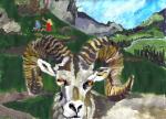 When the children had something serious to think about, there was only one place to go: up. The sky through the Door at the top of the attic stairs was almost always a dazzling blue. The smooth grey stones and lush green grass of the mountain-side were soothing to the eye and the touch, while the only sounds were the cool breeze, the trickle of mountain streams, and the far-off tinkle of cow-bells as the shepherd-boys and girls led their flocks of goat and sheep to pasture. If they needed entertainment, they had the playful scramblings of the black and white marmots who lived among the rocks, and the stories of the hermit who sometimes came and sat with them around their campfire; but most of the time, they came to the mountain to concentrate on something.