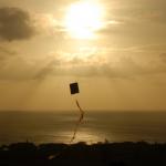 Jane: Forget about buying expensive kites – today with the help of Alex, who’s been making kites since he was a kid, we learnt how to make an excellent kite from scratch using a bit of paper, some cotton, a couple of wooden kebab sticks and a few old plastic bags. It is pretty easy. First the kids cut out a small rectangular bit of paper each, and drew a design of their choice on each one.