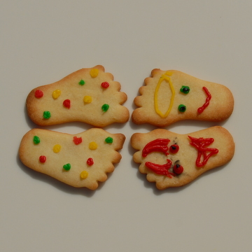 Your left foot out ... (Joe) If you can think of any others I will make a fresh batch and add them to the list. If you want to have a go yourself then I would make 1/2 the quantity of the shortbread dough from Anna-Louise's Redcurrant Tart recipe. Tamsin |