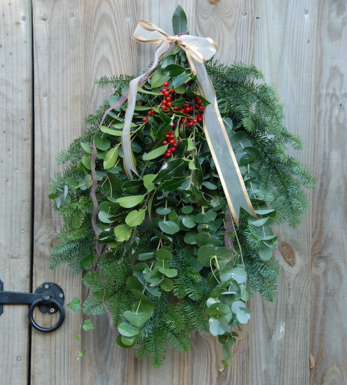 It's an old American custom to hang an evergreen wreath on your front door at Christmas time - and we love it so much we've adopted it here.