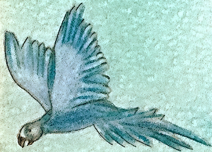 “Meet you in the hallway,” Sally said. They hurried off to pack the few things they would need: waterproof coats and boots, in case of storms; a flask of drinking water and a day’s rations each of bread, fruit, and chocolate; a pair of binoculars; a map of the islands; Marcopolon Words and Phrases to practise in their free time; and a little gift from Mrs Atlas to the Captain, for always taking good care of them. All these items went into the indispensable backpacks that Sally and Tom always carried on their journeys, and then they were ready. Sally took a deep breath, her eyes shining. “Do you think we’ll see pirates? And icebergs? This is so exciting!” “The sooner we get there, the sooner we’ll know,” said Tom. “I know,” Sally said, “but sometimes I like to pause right here, just on the threshold, until I can’t bear it any more…” Then with a loud “Heave-ho!” she pushed open the Door to the Hand of Friendship and leapt through. “Avast, me hearties!” she called joyfully. Tom followed a little more carefully, with one hand feeling for a rope or something to hold onto. But it was a strange sight that met them, for instead of foaming waves and flying spray, the sea was perfectly blue and level; and instead of Captain Bailfast’s voice booming out orders, there was silence; and instead of busy sailors hauling on the sheets (meaning, the ropes) and running up and down the companion-ways (meaning, the stairs), there was no sign of life at all. “What’s going on?” Sally cried out in alarm. “She’s like a ghost ship,” Tom exclaimed. “Goes chip,” croaked a voice from above. “Goes chip. Crock.” Sally spun round and called out anxiously, “Rita? Is that you?”